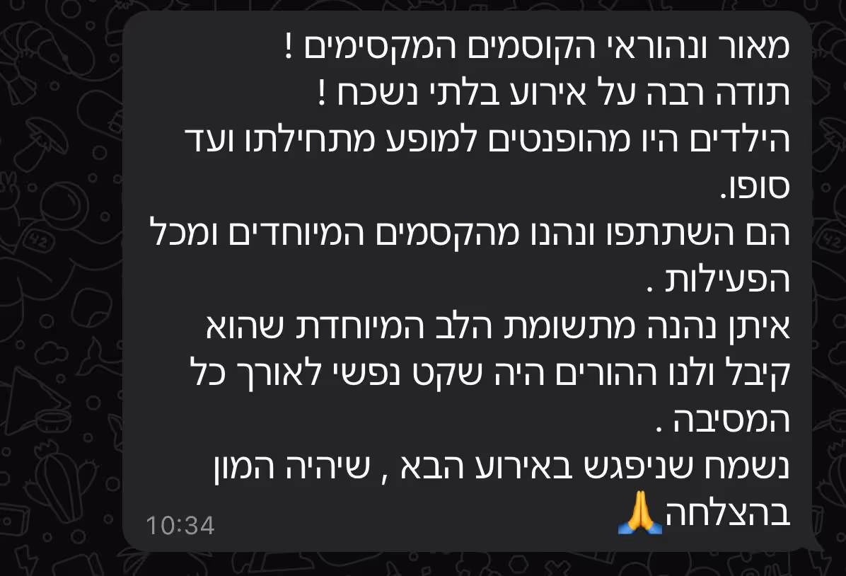 הילדים יוצאים לבית עם הפרס השווה של האחים הקוסמים שיהיה למזכרת מיום מיוחד ובלתי נשכח.